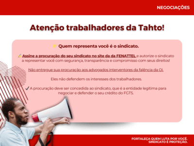 Em reunião realizada no dia 22/01/2026 entre a direção da TAHTO e a Comissão Nacional da Fenattel, a empresa informou que a procuração divulgada pela... Leia mais