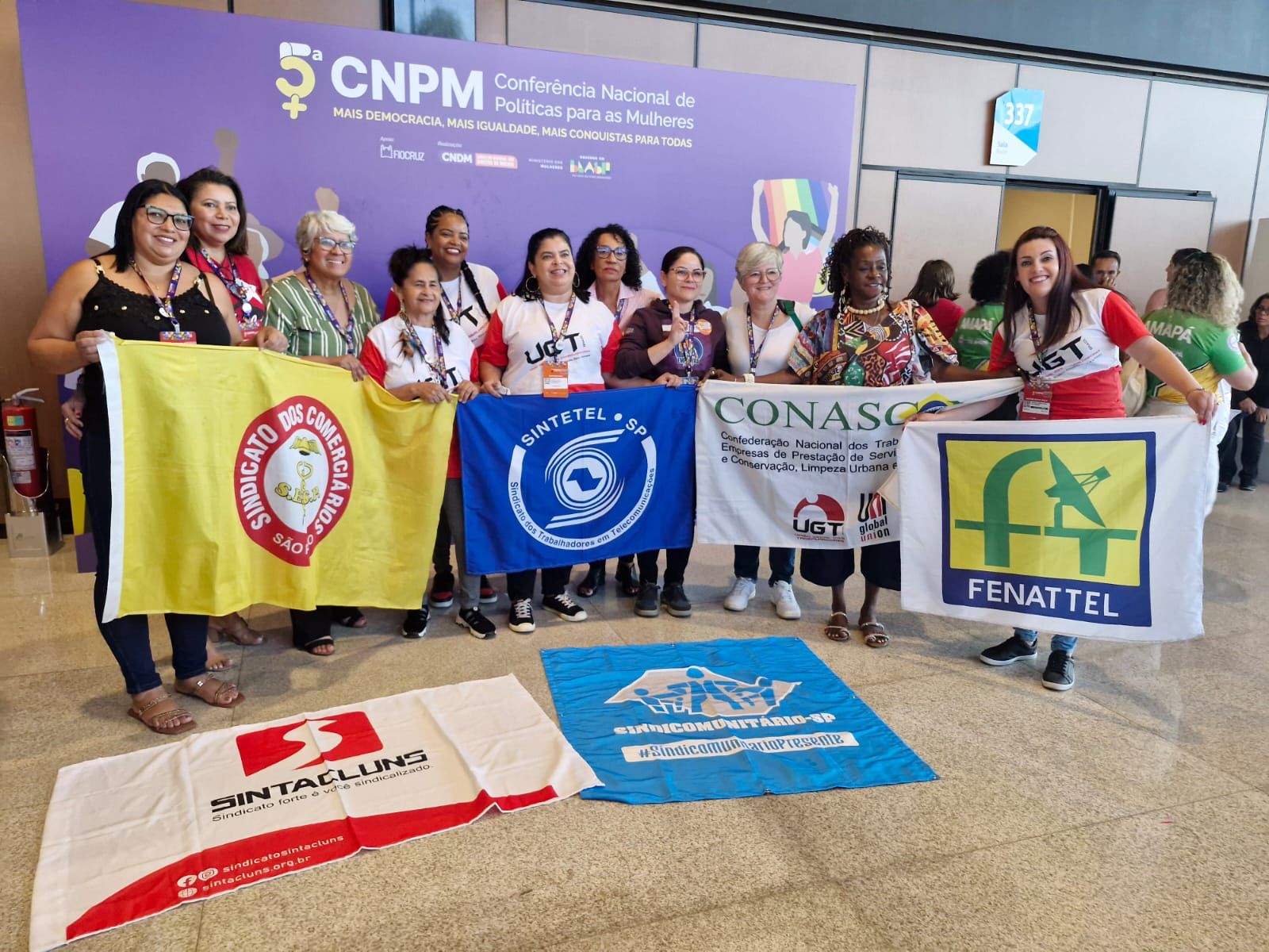 A FENATTEL teve atuação ativa nesse processo, defendendo a inclusão de diretrizes centrais de igualdade e autonomia econômica para as mulheres. A delegação da Federação participou com disposição para somar e aprender, representada por integrantes dos SINTTELs do Rio Grande do Norte, Santa Catarina e São Paulo, eleitas na etapa da 1ª Conferência Livre realizada na FENATTEL, além da participação do Sinttel Bahia.